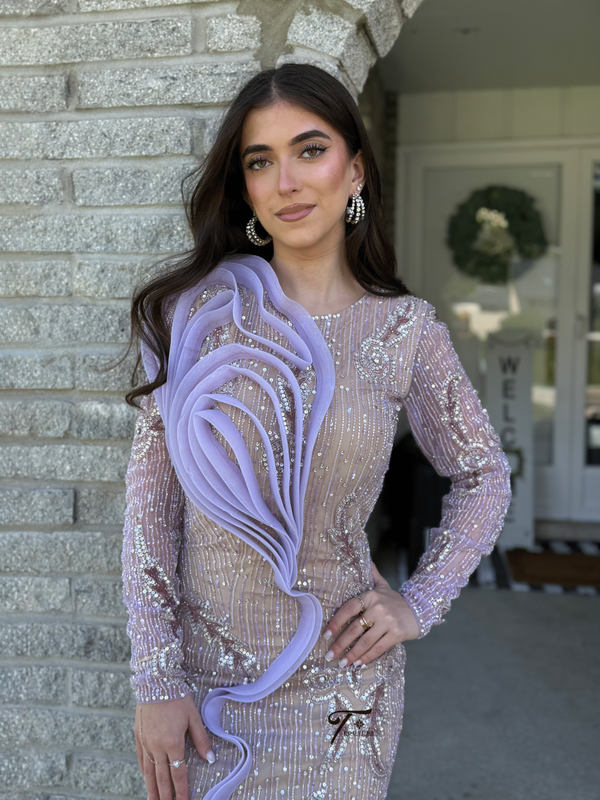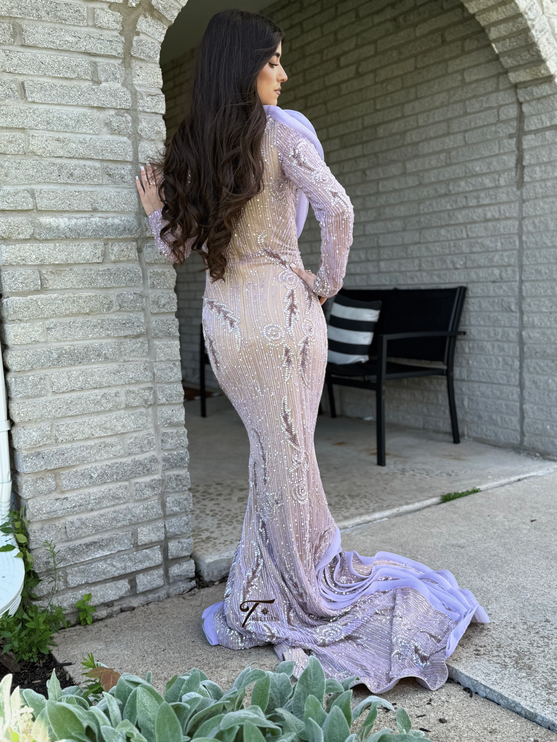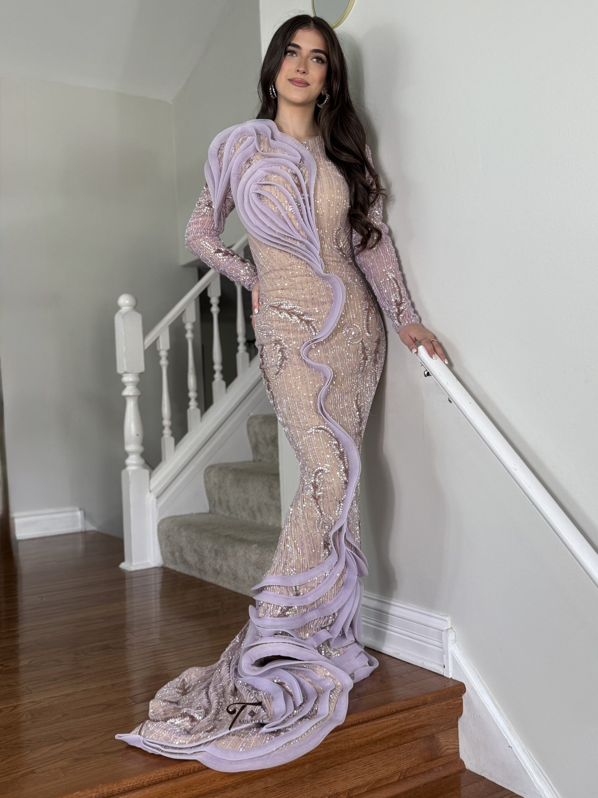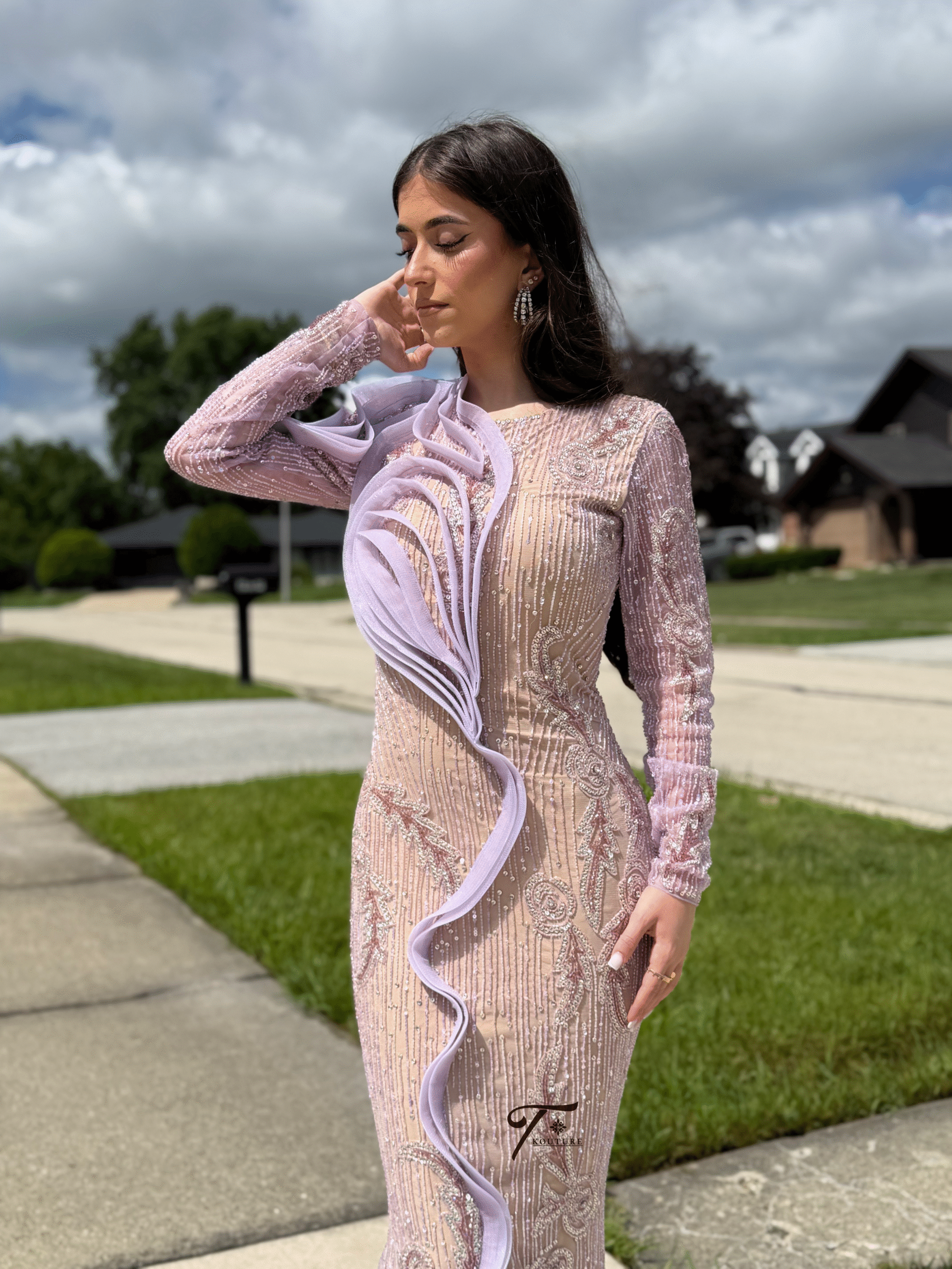 LONG SLEEVE HEAVY BEADED MAXI COUTURE DRESS