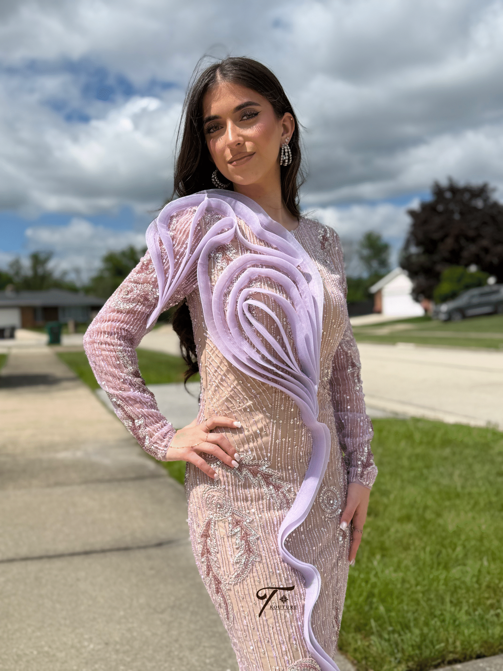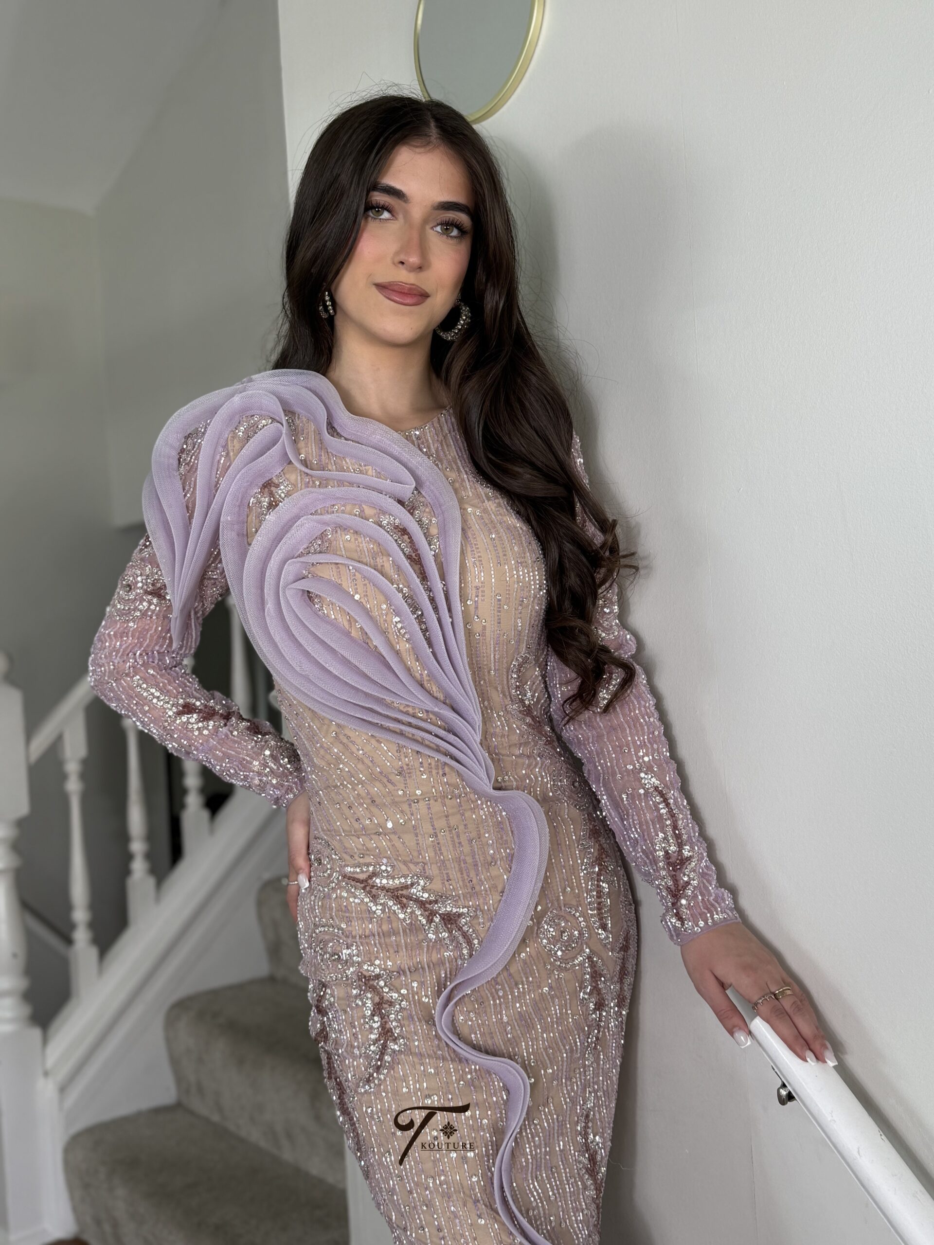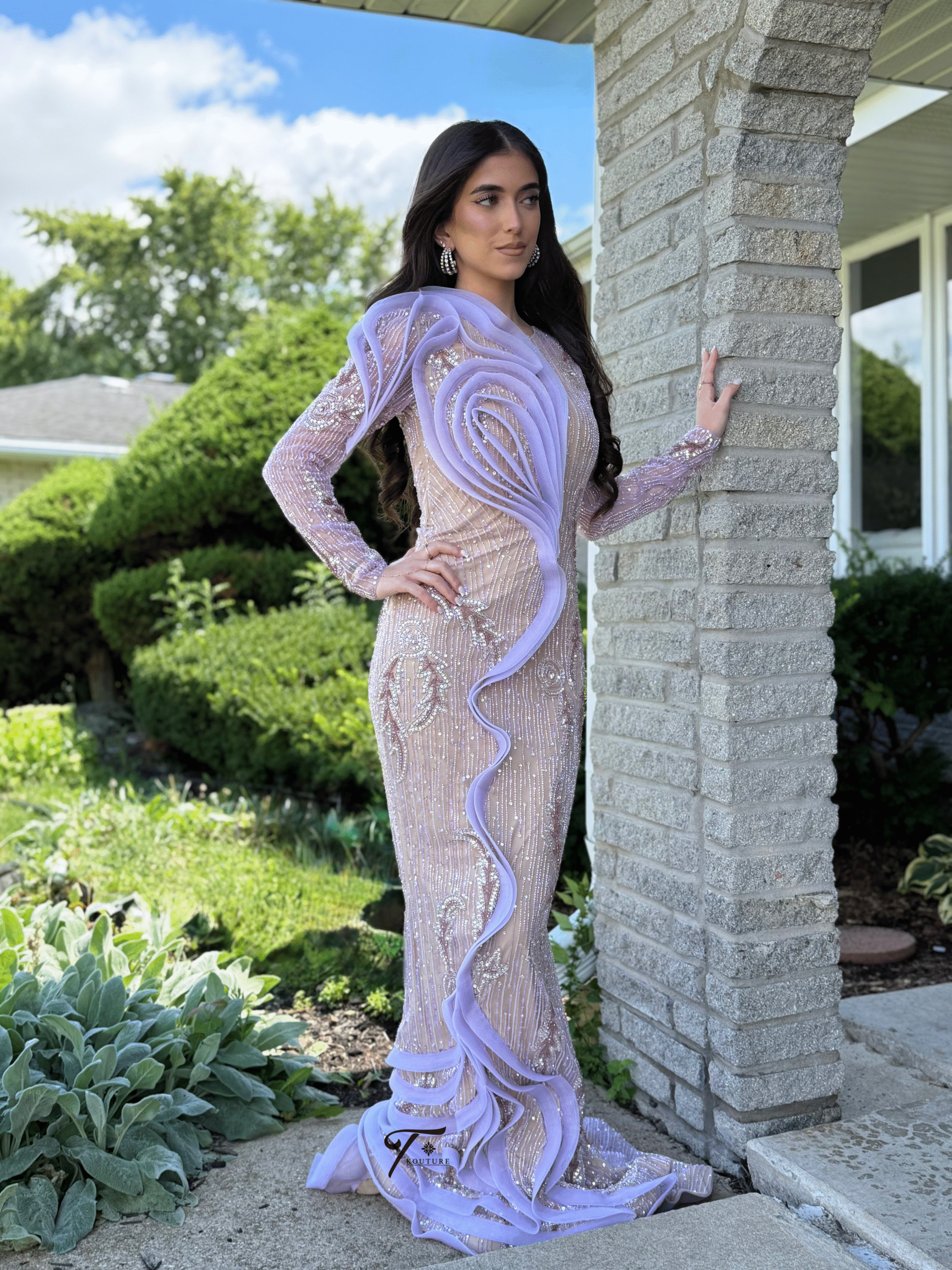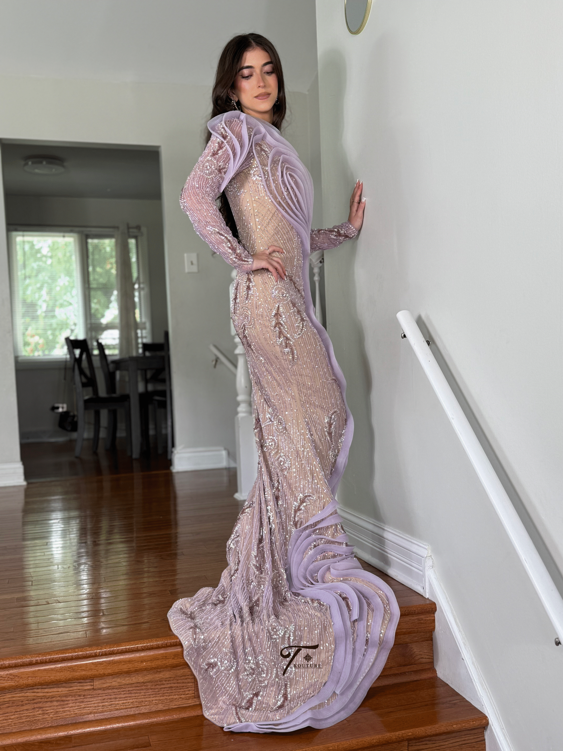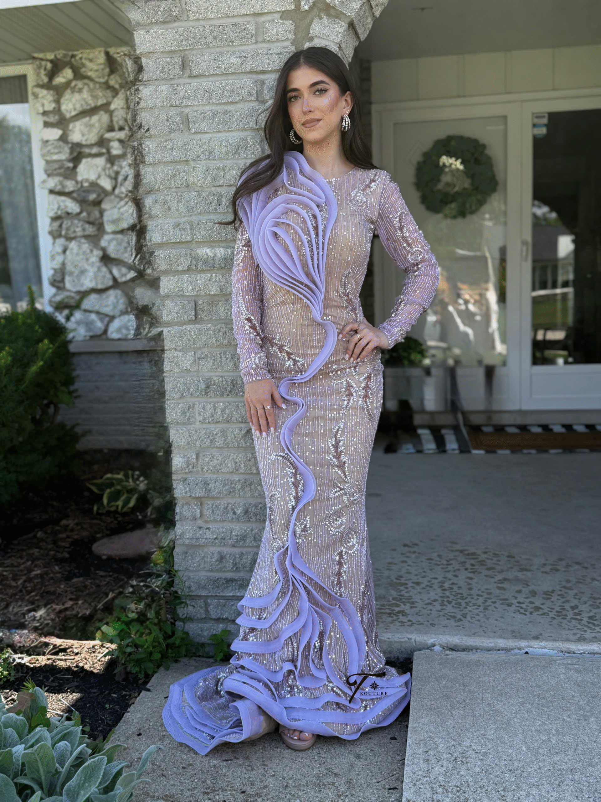 LONG SLEEVE HEAVY BEADED MAXI COUTURE DRESS