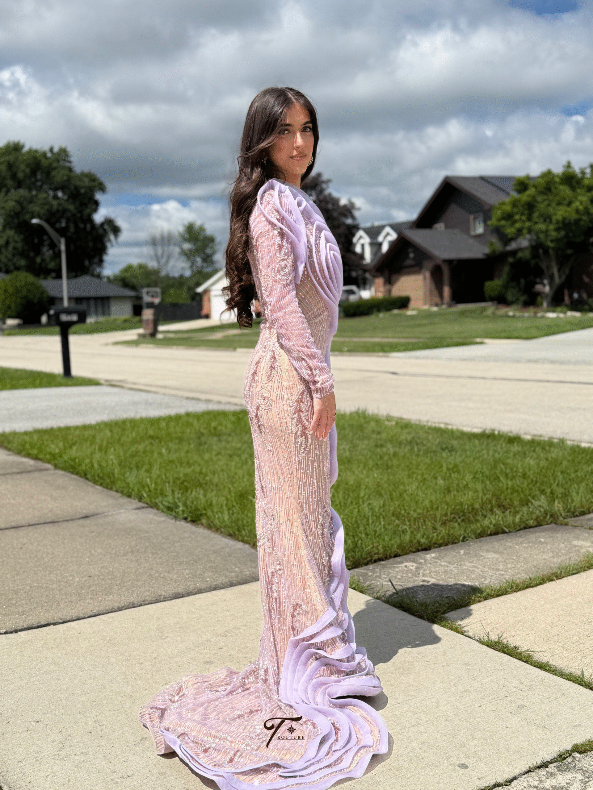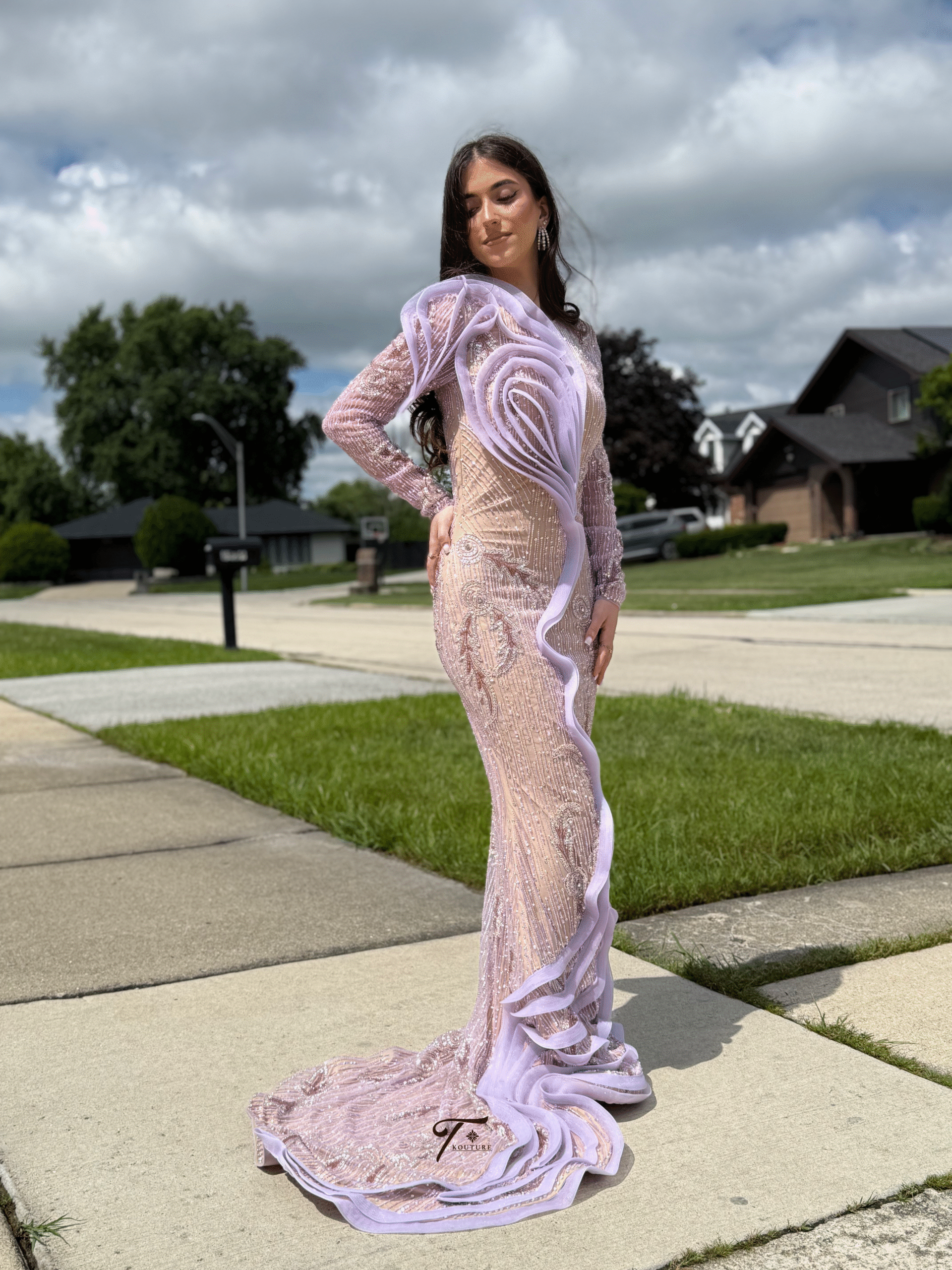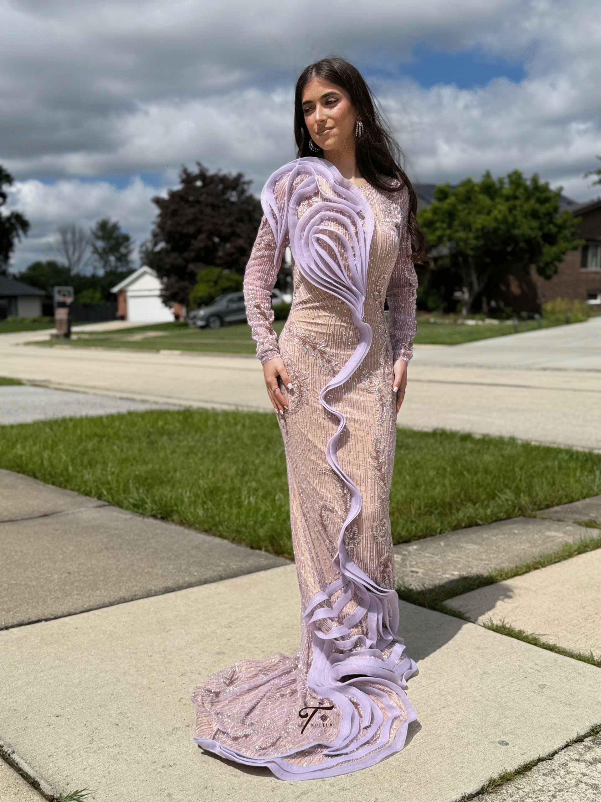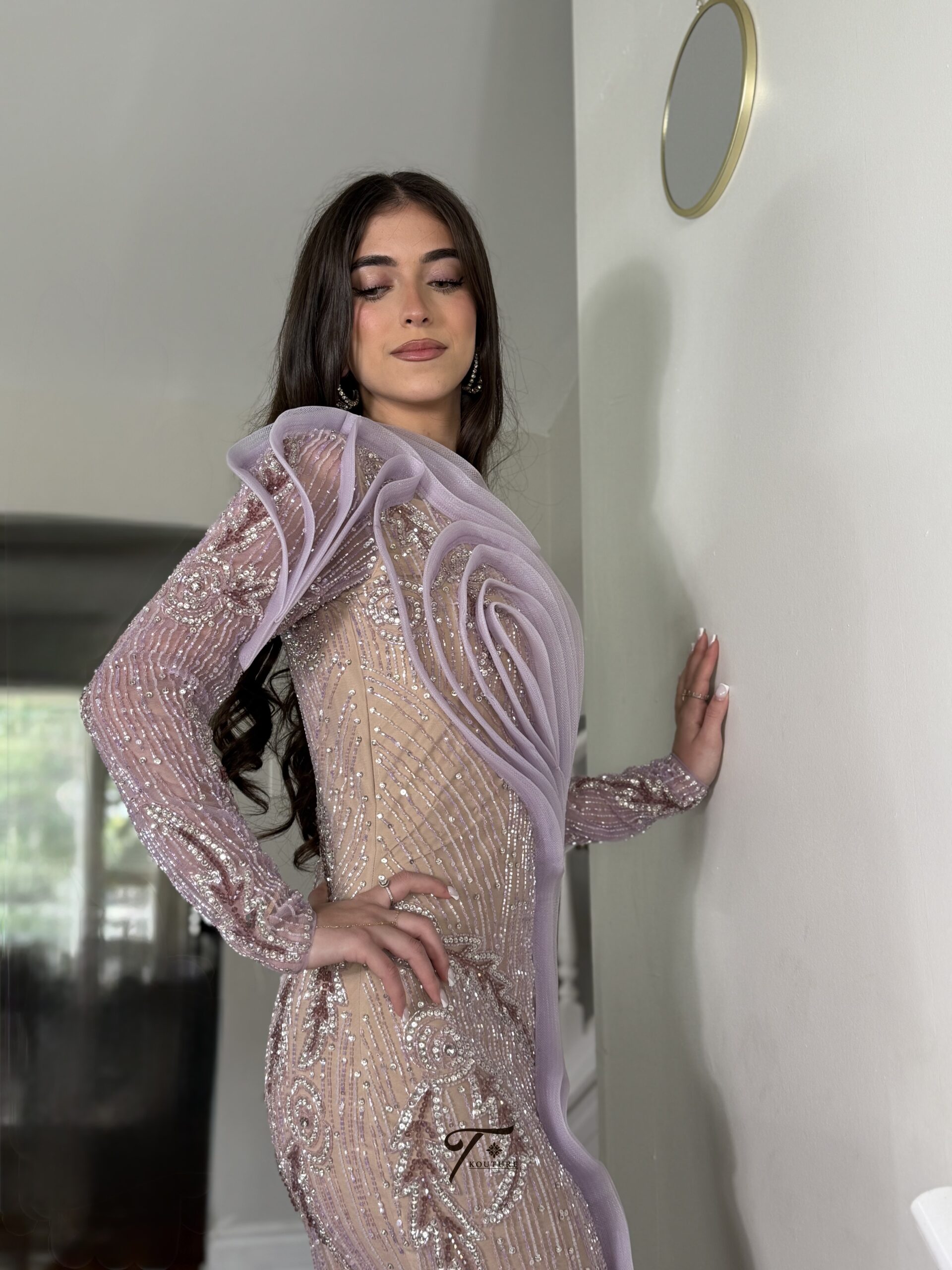 LONG SLEEVE HEAVY BEADED MAXI COUTURE DRESS
